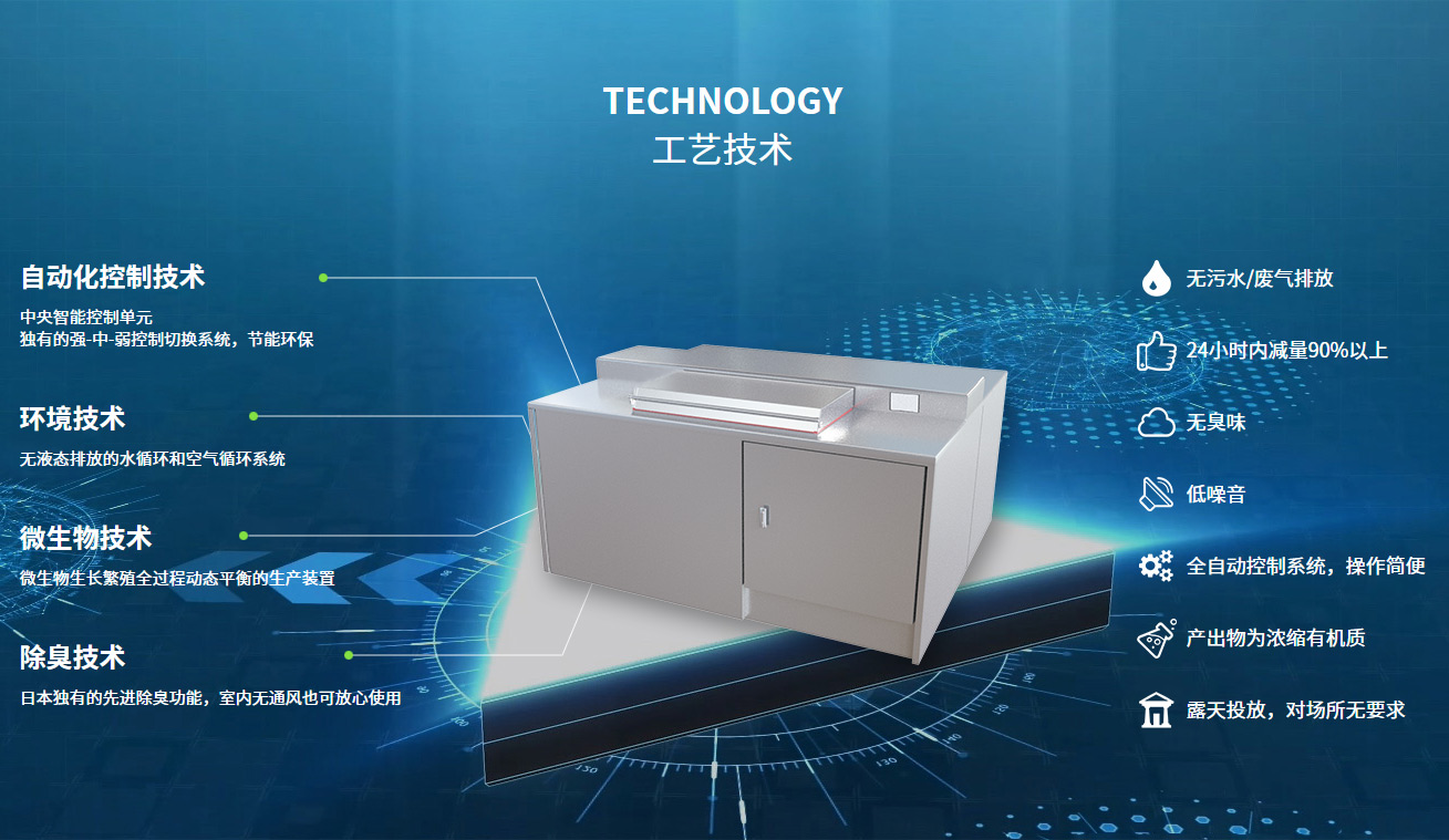 浙江瑞美生態(tài)科技有限公司是專業(yè)從事廚余垃圾源頭一站式資源化處理的企業(yè),依托日本先進的設備制造工藝,與強大的生物處理技術(shù),創(chuàng)新研發(fā)專用于廚余垃圾處理就地化小型設備。完全實現(xiàn)廚余垃圾就地化、無害化、資源化、智能化、無污染就地處理。目前已在政府、企事業(yè)、學校、社區(qū)、醫(yī)院及農(nóng)村進行廣泛使用,為垃圾分類、綠色城市做出新的貢獻。